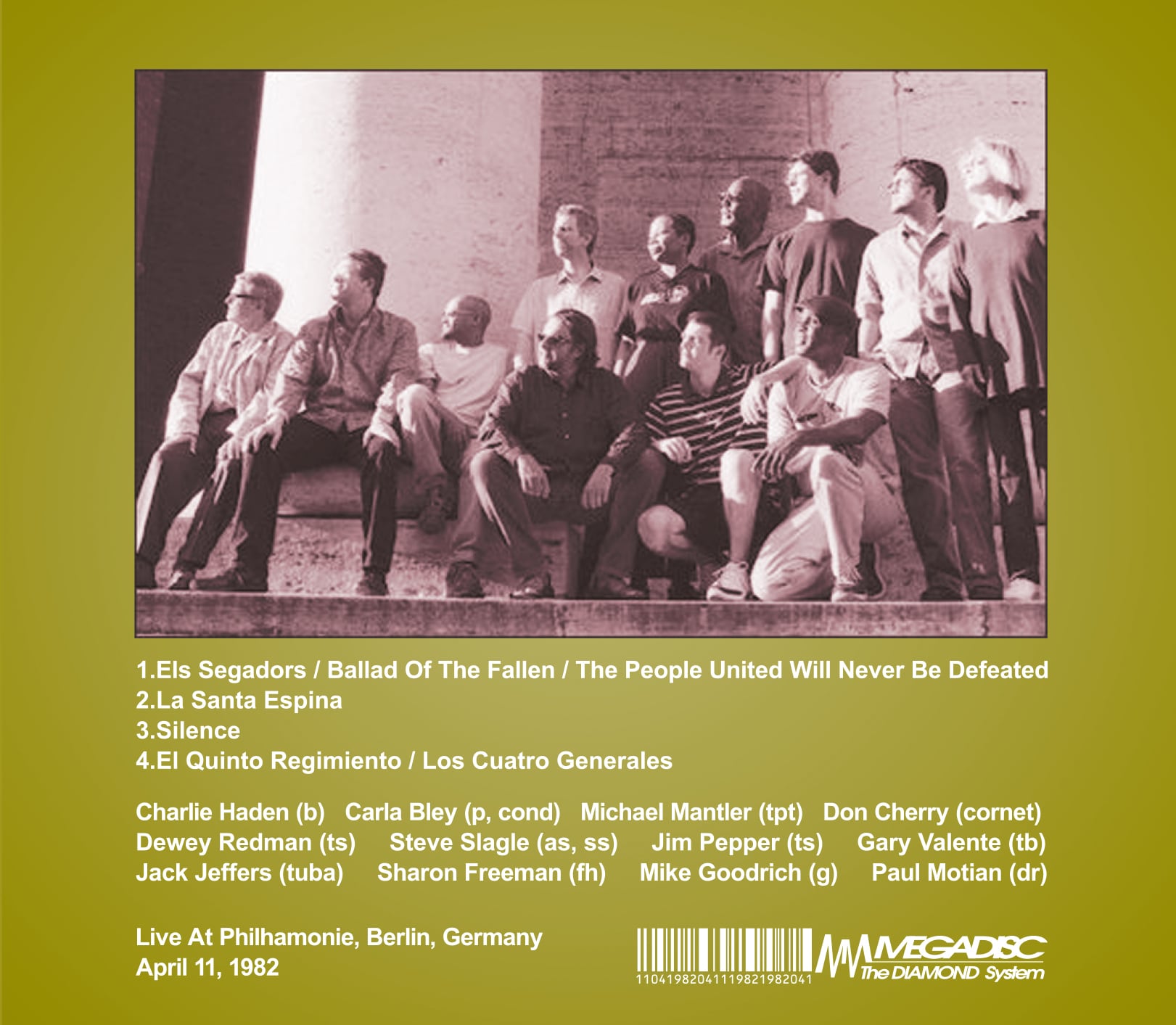 アルバム「戦死者たちのバラッド」のリリースに伴うツアーより1982年4月11日ドイツ、ベルリン・フィルハーモニーでのライヴを高音質ステレオ・サウンドボードにて1時間以上に渡り収録した必聴盤です。本公演は嬉しいことにオフィシャル盤と全く同じメンバーの、ヘイデンのベースと指揮者兼ピアニストのカーラ・ブレイを軸に、トランペットのドン・チェリーとマイケル・マントラー、テナーのデューイ・レッドマン、ギターのミック・グッドリック、ドラムスのポール・モチアンら、総勢12人らが織り成す叙情的で壮大で優雅なオーケストレーションと素晴らしいメンバーらの自由度の高い即興演奏をタップリと聴かせてくれます!