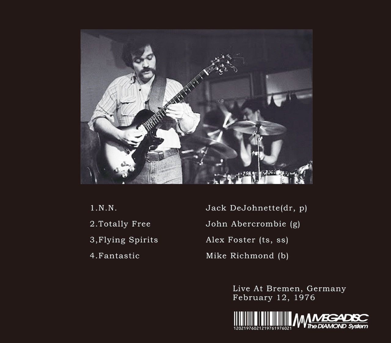 1976年2月、ドイツ・ブレーメンでプロモーションとして特別に行われたライブ・ステージを発掘音源より初めて収録した正真正銘の激レア音源盤が登場しました。プレステッジ・レーベルから1枚、ECMレーベルからは3枚とオフィシャルではアルバムがリリースされているジャック・デジョネット・ディレクションズ。本番はECMレーベルからリリースされた「アンタイトル」リリース後のライブとなり、ファンの皆様には本音源の計り知れないレア度がお判り頂けると思います。アルバム「アンタイトル」ではキーボードでウォーレン・バーンハートが録音に参加していますが本ライブ前にバンドを脱退しており、本ライブではジャック・デジョネットがピアノを弾いており哀愁あるピアノ・ソロを奏でてデジョネットの多彩な才能を再確認して頂けます。アバークロンビーの鋭いギターワークに絡むアレックス・フォスターのサックスが刺激的なサウンドを構成しておりスタジオ録音では決して味わうことが出来ないライブをご堪能下さい。