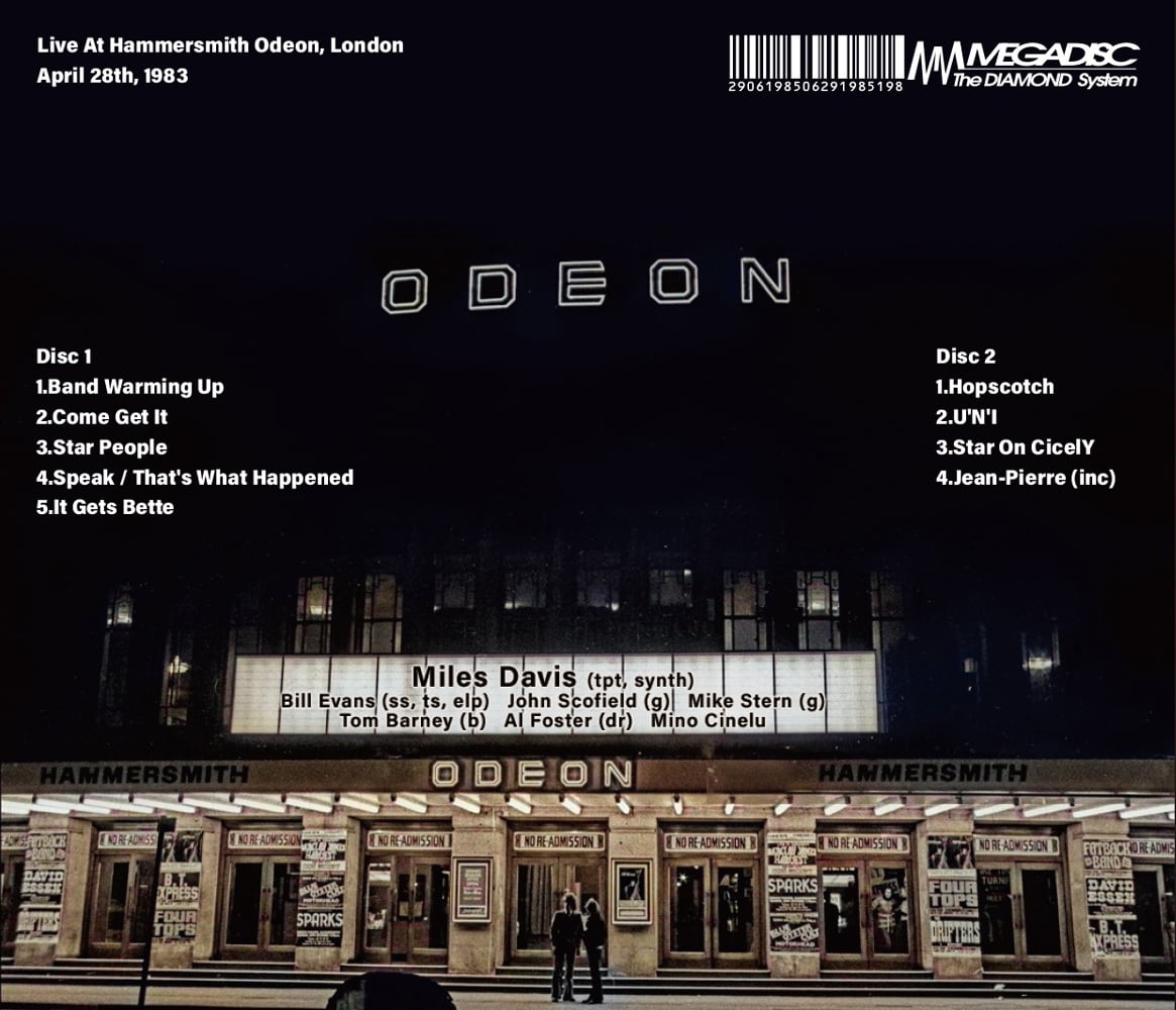 1983年のワールド・ツアーから1月28日のアリゾナ、フェニックス公演からスタートし10月31日のパリ公演まで世界を精力的に回り完全復活したマイルスの姿をファンの目に焼き付けた印象的なツアーとなりました。本音源には録音者自ら提供があった当日のチケットがありましたので裏面ジャケットにプリントしています。一説には本ハマースミス公演は4月27日との説もありましたが、チケットに印刷されてる28日としました。