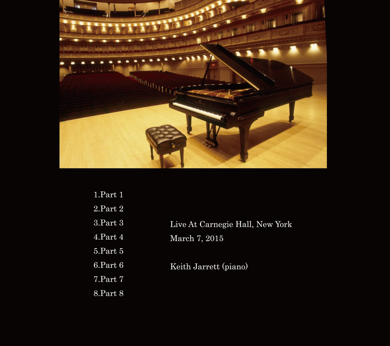 体調不良により年間、僅か7回しか行われなかった2015年のライブから3月7日のニューヨーク、カーネギーホール公演をデジタルHDオーディエンス音源を元ソースとし初めて記録したマニアお宝音源です。