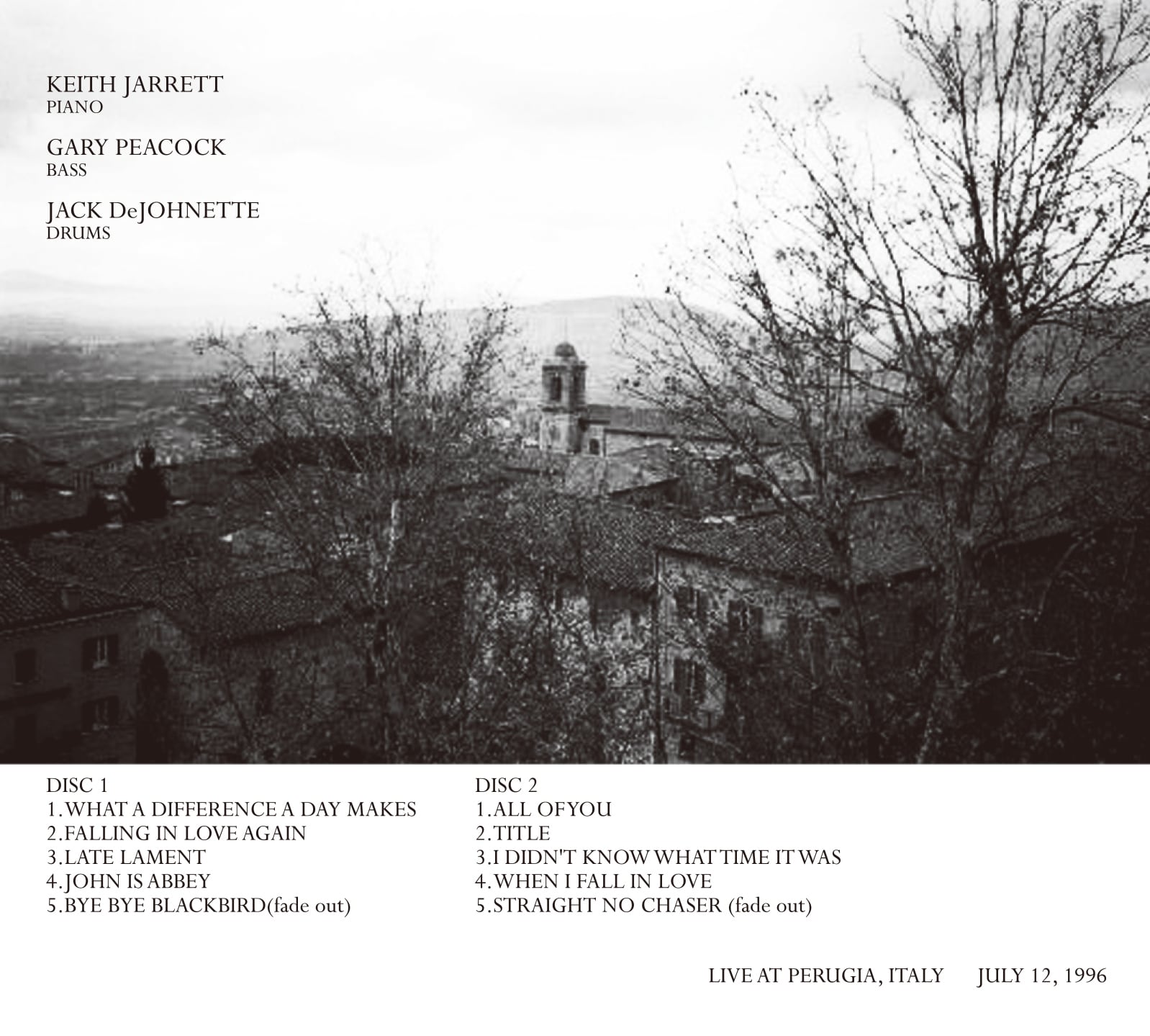 舞台はイタリアの夏、音楽都市ペルージャ。高揚感に満ちた観客の熱気を受け、トリオは冒頭から驚異的な集中力で駆け上がる。ジャレットのピアノは、リリカルな美しさと荒々しいスイングを同時に孕み、楽曲の骨格を解体しながら新たな生命を吹き込む。ピーコックはしなやかで詩的なラインを自在に紡ぎ、デジョネットはダイナミックかつ立体的なドラミングで全体を推進する。