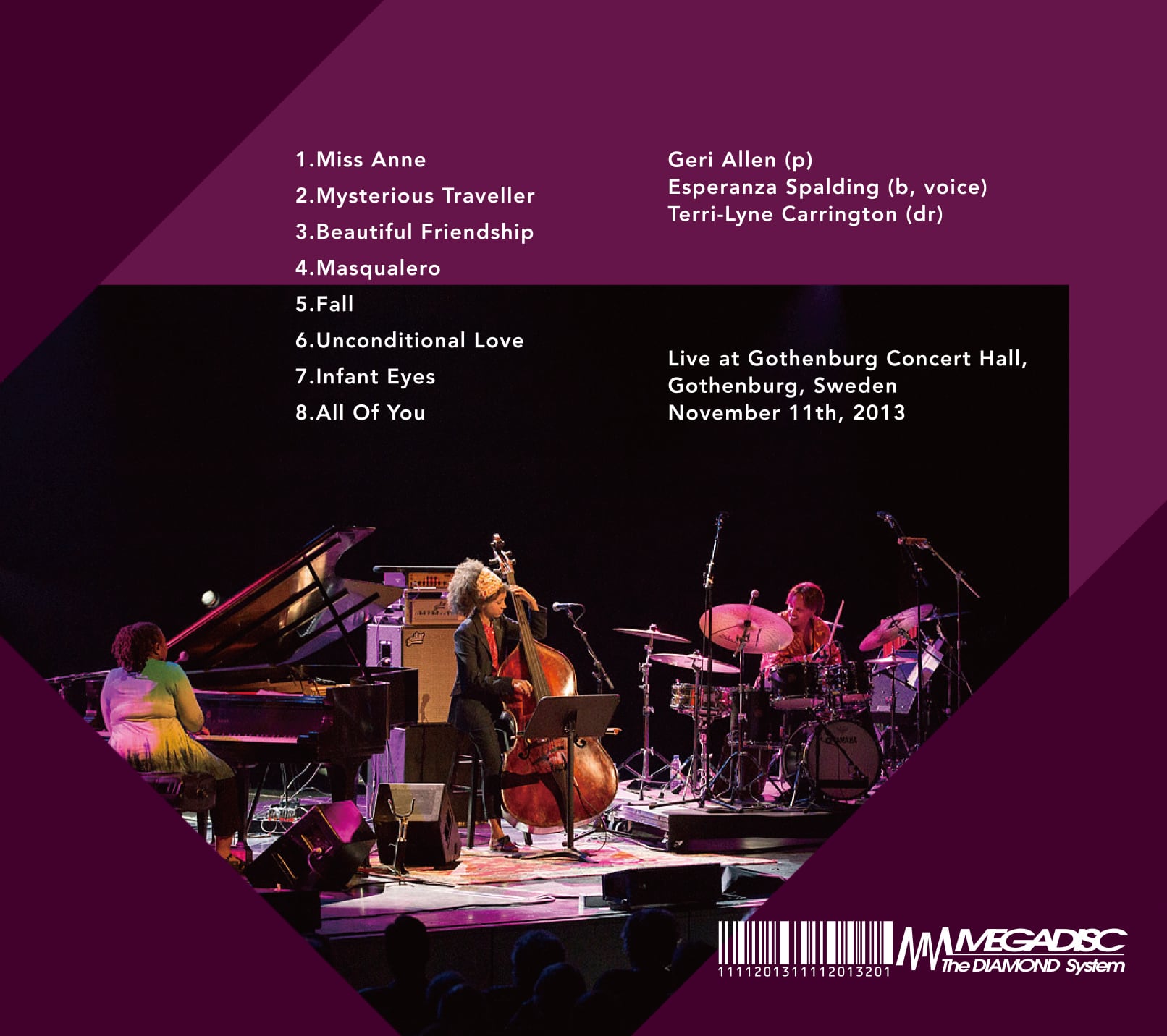 残念ながら2017年に亡くなった実力派ピアニストであるジェリ・アレン、過去においてグラミー賞で4つのアワードを受賞し現代ジャズ・シーンを代表するベーシスト&ボーカリストのエスペランサ・スポルディング、そして20年以上にわたりショーター、ハンコック、スタン・ゲッツ、サンボーン等錚々たる顔ぶれのツアーに参加しその実力が認められているドラムスのテリ・リン・キャリントンという3人による正統派ジャズ・トリオ。冒頭からエリック・ドルフィーの楽曲「ミス・アン」から始まり2曲目には1974年に録音されたウェザー・リポートの代表曲「ミステリアス・トラヴェラー」と続くマニアックな選曲に脱帽です。更にマイルスの楽曲もオリジナルに忠実ながら素晴らしいアレンジで披露され聴き所は満載となっています。