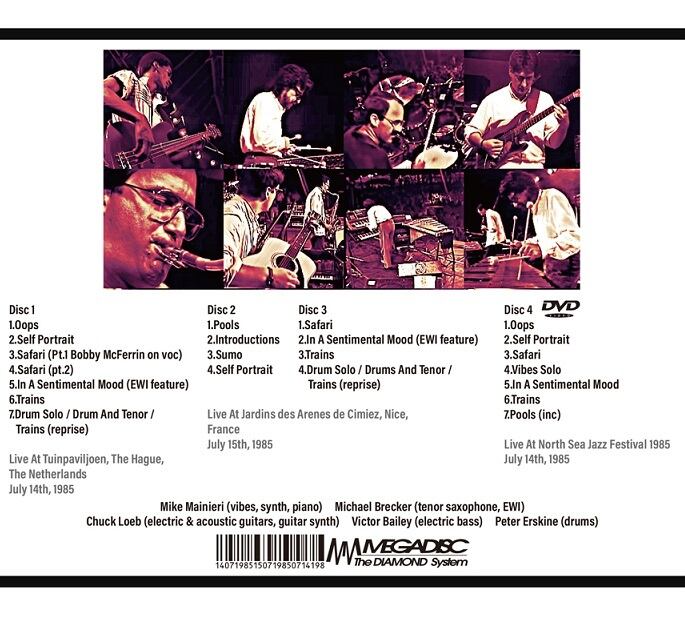 ディスク2,3には翌日7月15日にフランス、ニースで開催されたニース・ジャズフェスティバルに出演した模様が収録されています。この音源も過去にリリースされていましたが、前日より酷いヒスノイズ、ハムノイズが生じており、また途中ピッチも狂う箇所もあり後日確認されました。今回リリースされた本番では、元テープの経年劣化により生じたヒスノイズ、やブーンというハムノイズも極限まで軽減されております。更にピッチの狂いでテンポが早くなっていた箇所も修正されています。楽曲によっては80~94セントのピッチ修正となっています。ライブでは翌年にリリースされたアルバム「マグネティック」からピックアップされた「スモ」、「トレインズ」も演奏されておりアルバム「マグネティック」のお披露目ライブなのでしょう。マイケルのテナーは無論ですが、アルバム「マグネティック」で初出となったEWIでのベンド奏法を多様したテクニックが聴き所となります。