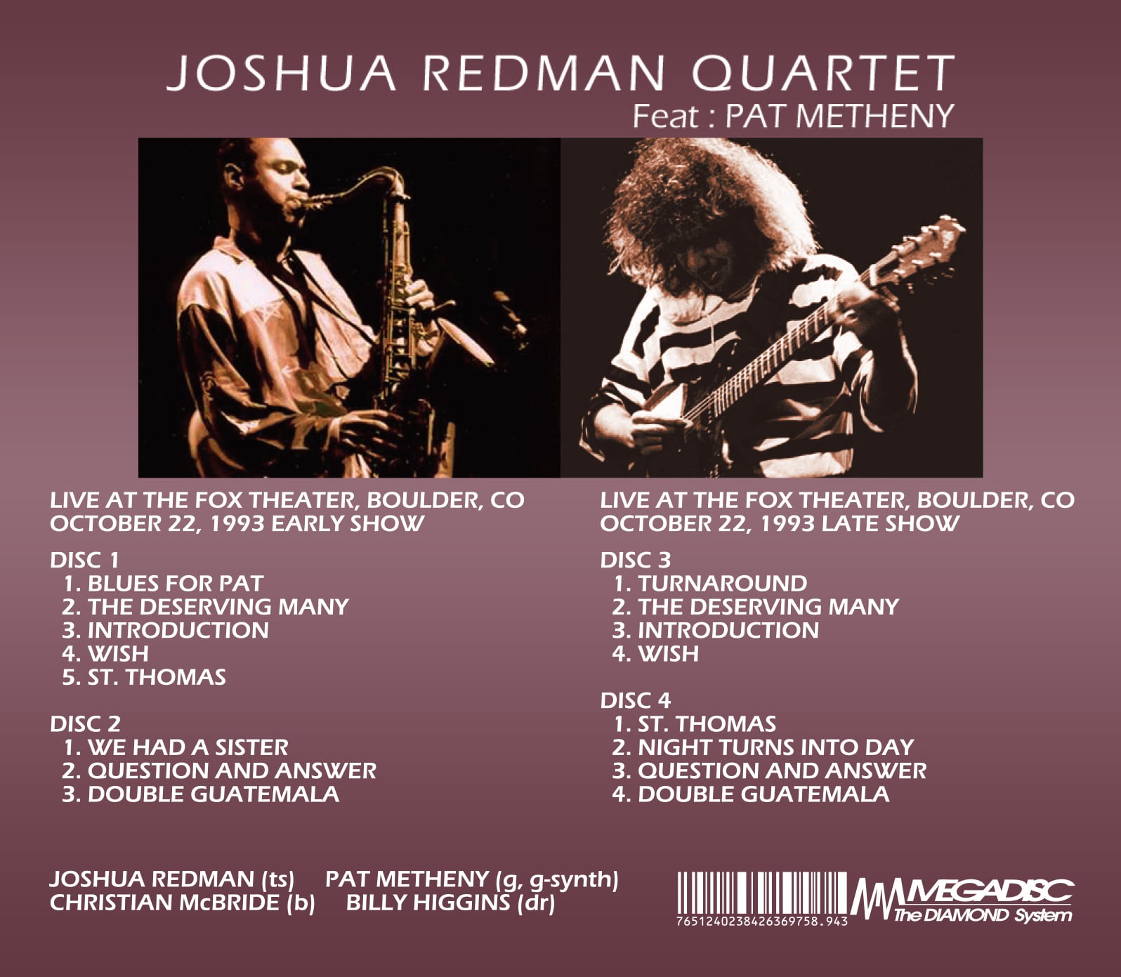 JOSHUA REDMAN QUARTET / FOX THEATRE 1993(4CDR)メセニー等を加えた最強カルテット!