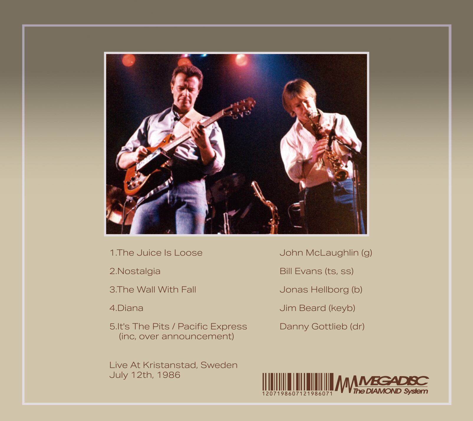 再編マハヴィシュヌ第1弾アルバムのリリース後に行われたヨーロッパ・ツアーから再放送されたスウェーデン、クリシャンスタード・ジャズ祭に出演したライブが登場しました。これだけの凄腕メンバーを揃えながらスタジオでの録音では非常にクールな演奏に終始し煮え切らないファンの方も多かった筈です。今回、メガ・ディスクからリリースされた本盤を聴けばそのような不満は解消されマクラフリンの烈火の如くフレーズが展開されるギターは正に必聴です。更にベースにはスウェーデンの鬼才ヨナス・エルボーグもマクラフリンに負けず劣らずプレイを存分にお聴き頂けます。キーボードにはジム・ビアード、サックスにはビル・エヴァンス、そしてドラムスにはパット・メセニー・グループでも知られるダニー・ゴットリーブが参加しています。さて、肝心の音質ですが再放送された非常にクリアーな音源を収録していますのでオフィシャル基準となっています。