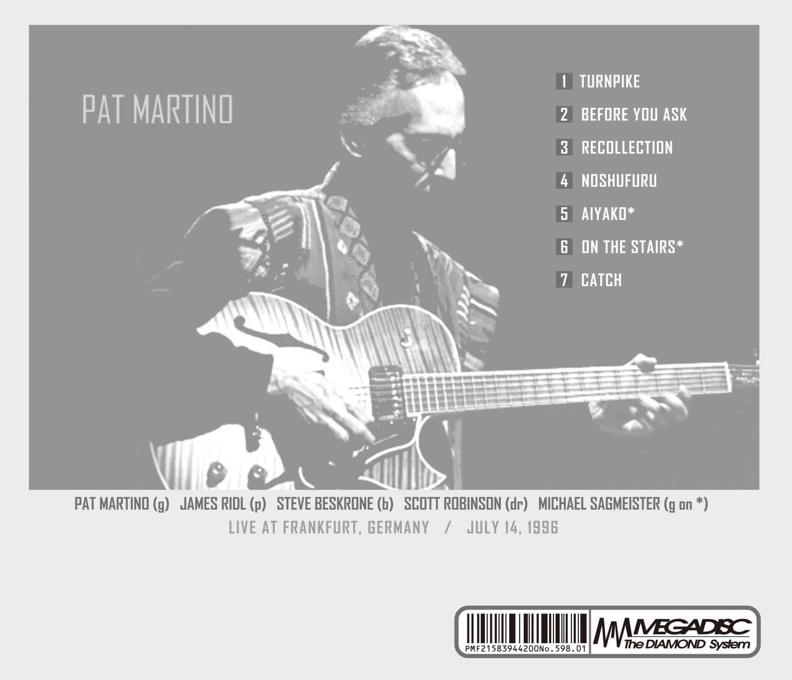 1996年に自身のクインテット構成で出演したドイツ、フランクフルト公演の模様をFM放送されたライブ音源を発掘音源とは思えない抜群の音質で収録しています。ギターのマイケル・ザーグマイスターが3曲参加しておりマルティーノとのプレイが聴きモノとなるライブです。音質、演奏内容と当店オススメのタイトルです。